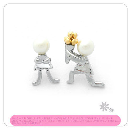 甜蜜爱情男孩女孩求婚珍珠不对称耳钉
