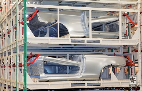 所有的生产都离不开原材料的加工,由值得信赖的供应商24小时不停提供的钢材和其他的原材料一样,都是采用“Just-in-time”的精益管理模式进行,以便尽可能减少库存,降低存储成本。这些上图所示的钢材运进工厂后不超过几小时就会被加工成各种车身外壳部件和其他钣金部件。